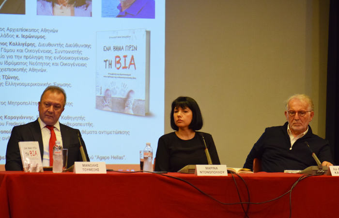 Η παρουσίαση του νέου βιβλίου των εκδόσεων «ΑΡΧΟΝΤΑΡΙΚΙ», σχετικό με την ενδοοικογενειακή βία, αποτέλεσε μια έκπληξη για όσους την παρακολούθησαν στο θέατρο της Ελληνοαμερικανικής Ένωσης, το Σάββατο 13 Δεκεμβρίου 2025. Oι Αθηναίοι που τίμησαν με την παρουσία τους την εκδήλωση, γνώρισαν μια άλλη οπτική πρόληψης του τραγικού κοινωνικού φαινομένου της εποχής μας. Κι αυτή η οπτική, είναι η πρόληψη μέσα από την χριστιανική θεώρηση της ζωής. Συνηθίζουμε να παρακολουθούμε από τα ΜΜΕ «λύσεις» μόνο μέσα από την κοινωνιολογία, την ψυχολογία, την καταστολή κ.λπ. Οι συγγραφείς του Συλλογικού Τόμου «ΕΝΑ ΒΗΜΑ ΠΡΙΝ ΤΗ ΒΙΑ», μας αποκαλύπτουν ότι οι αξίες του Xριστιανισμού μπορούν, σε συνθήκες διαλόγου με τους κοινωνικούς φορείς, να φέρουν την ελπίδα για ένα καλύτερο αύριο!